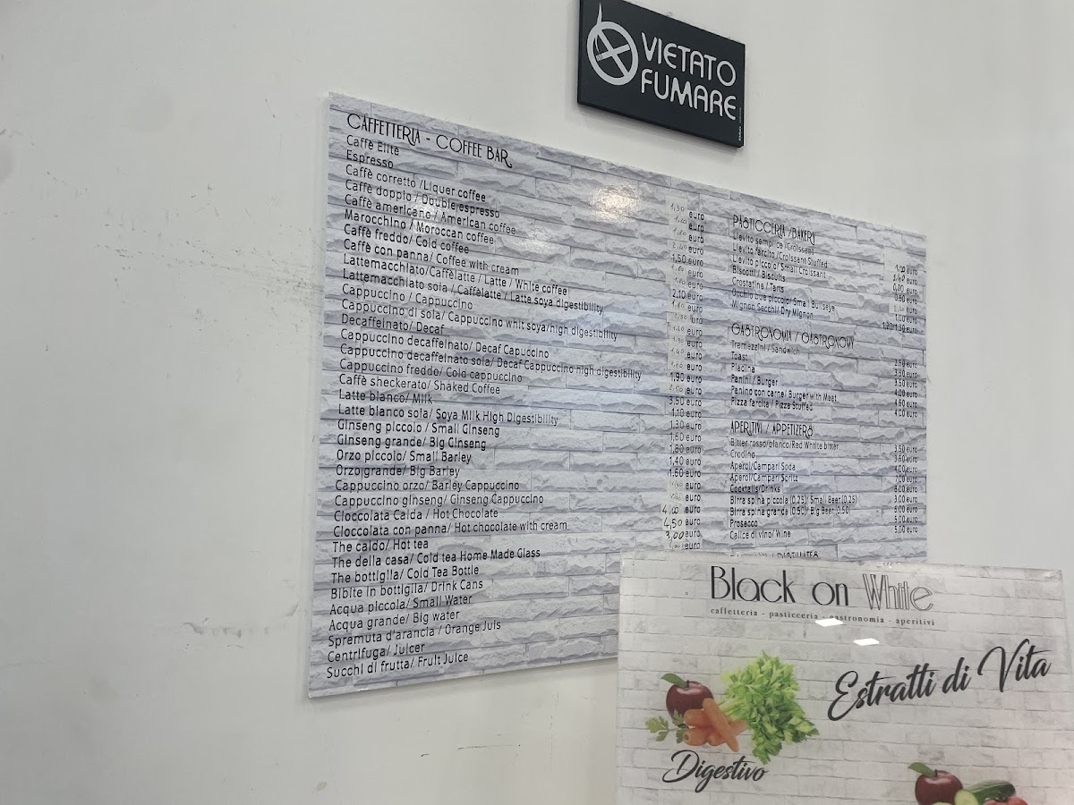 Whether you’re grabbing a quick coffee to go or settling in for a leisurely breakfast, Black on White-Bar Roma is a must-visit for anyone looking to experience the best of Roman café culture. Don’t miss out on this hidden gem — it’s where flavor, affordability, and a welcoming atmosphere blend beautifully, making it a favorite among all who stop by. Grazie mille for a delightful escape!